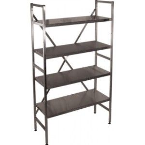 Стеллаж кухонный модульный со сплошными полками используется для хранения кухонного инвентаря и упакованных пищевых продуктов. Материал изготовления — нерж.сталь AISI 304. Боковые стойки позволяют наращивать стеллажи в длину, получая единую конструкцию. Имеет регулируемые опоры, усиленные полки грузоподъемностью до 150 кг на полку. Конструкция разборная.