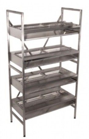 Стеллаж модульный с полками для сушки посуды используется для сушки и хранения кухонного инвентаря. Материал изготовления — нерж.сталь AISI 304. Боковые стойки позволяют наращивать стеллажи в длину, получая единую конструкцию. Имеет регулируемые опоры, усиленные полки.