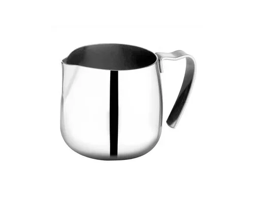 Профессиональный молочник (питчер) от мирового производителя кофейных аксессуаров Motta. Предназначен для взбивания молока при приготовлении молокосодержащих кофейных напитков. Удобный носик позволяет корректно направлять молоко и успешно применять питчер в латте-арте. Благодаря эргономичной ручке держать молочник в руке удобно и комфортно. Изготовлен из высококачественной нержавеющей стали, что в свою очередь хорошо влияет на теплопроводимость и качество молочной пены.